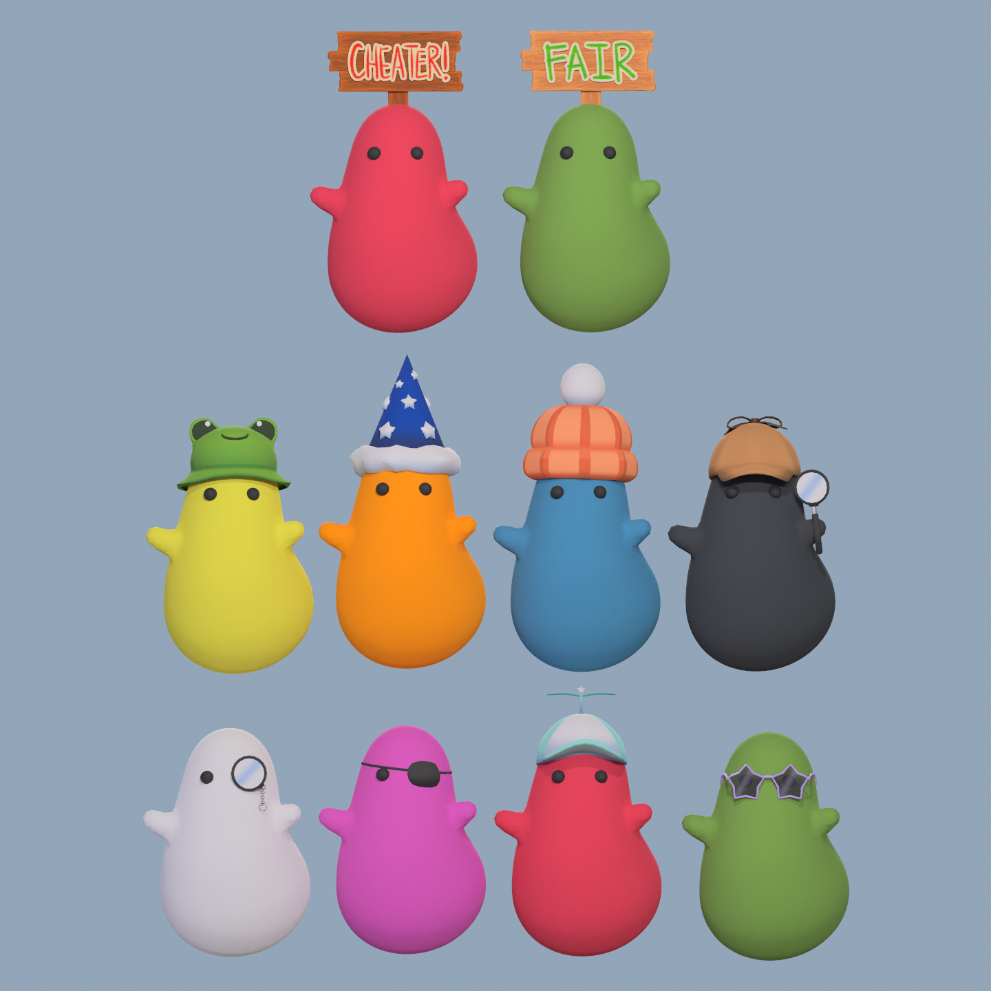Custom hats, eye-wear, and currency for the blobs of the Primer learning Youtube channel.