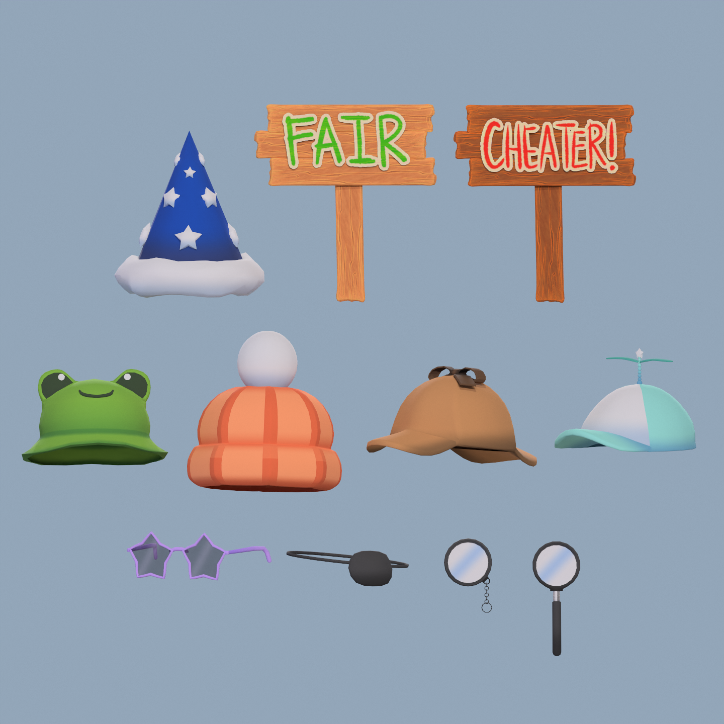 Hats, Eye-wear, and coin normal maps created by me.